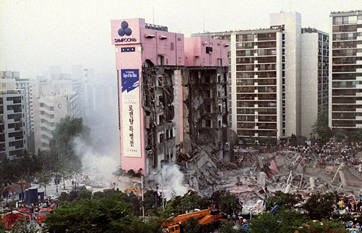 Здание торгового центра в Сеуле унесло жизни 502 человек. Катастрофа произошла 29 июня 1995 года, обрушился «Сампунг» (Sampoong). В истории Южной Кореи этот день стал крупнейшей техногенной катастрофой. Огромное здание рухнуло в течение двадцати секунд.