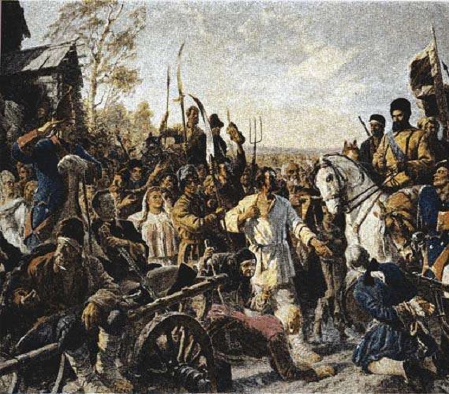 Была ли война в империи в 1773-1775 годах - это вопрос. За Емельяном стояли в большинстве своем яицкие казаки, государство их притесняло, те хотели свободы. К тому же, Елизавета ввела монополию на соль, что сильно подкосило казаков, которые промышляли соленой рыбой. Это восстание было не первым, до него казаки уже бунтовали, так что, Пугачёв попал в нужное место. А вот крестьяне шли за бунтарем со своими интересами: они резали помещиков, жгли усадьбы. Также крестьяне подтянулись к Емельяну после прочтения им в Саранске манифеста о вольности. Управлением восстания занимался не один Пугачёв, у него был целый штаб специалистов, многие из которых были даже не из России. А особого внимания заслуживает вопрос финансов - откуда на все это взялись деньги?