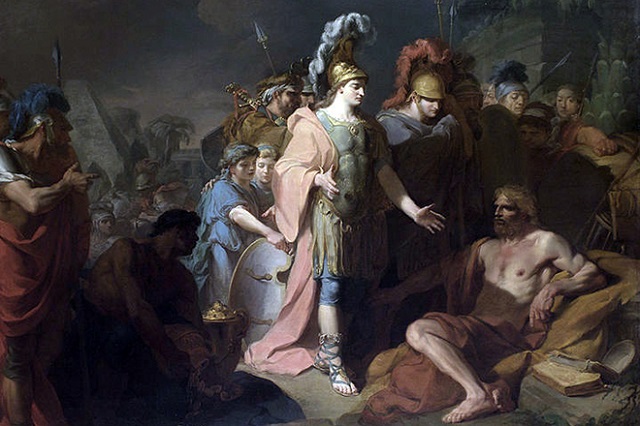 Отец Александра, Филип Второй Македонский, нанял Аристотеля, одного из величайших философов, обучать 13-летнего принца. Мало что известно о трех годах обучения, но, судя по всему, оно оказало свое влияние. Согласно легенде, будучи еще принцем, Александр искал общения со знаменитым аскетом Диогеном, который отрицал общественные порядки и спал в бочке. Александр спросил Диогена, может ли он, со всеми своими богатствами, что-то сделать для философа. «Да, - ответил Диоген. - Отойди в сторону, ты загораживаешь мне солнце». Александр был в восторге от Диогена. «Если бы я не был Александром, я был бы Диогеном», - говорил он. Позднее, находясь в Индии, он приостановил военные завоевания для того, чтобы иметь время побеседовать с гимнософистами, «нагими философами», отрицавшими человеческое тщеславие, да и одежду заодно.