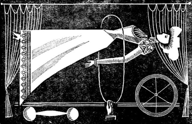 Пальма первенств в этом фокусе отдаётся японцу Окито. Но история несправедливо отнеслась к Нине Зубаль, которая выступала в Санкт-Петербурге. Женщина выходила к зрителям в костюме герольда Средних веков, ей даже дали псевдоним «Герольд». Итак, суть в том, что огромный блестящий шар нанизывался на верёвку, ее иллюзионист растягивала в своих руках, а потом переворачивала вертикально. Получается, что что шар должен съехать, но он стоял на месте. Шквал оваций вызывали те моменты, когда народ кричал: «Поехали!» и «Стоп!», ведь по их приказу якобы двигался шар.