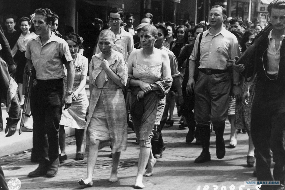 Вряд ли вы об этом слышали, но французских женщин наказывали за то, что они встречались с немцами. Дело в том, что в то время, пока 100 тысяч французов сражались в составе армии вермахта, всего 25 тысяч французов находились в армии сопротивления. В то время, когда немцы отступали, французские «мужчины» начинали издеваться над девушками, которых считали предательницами. Что они делали? Они обривали им головы наголо, раздевали и водили по улицы обнаженными, потом девушек часто обливали помоями, детям, которые родились от немцев, этого тоже не забывали всю жизнь.