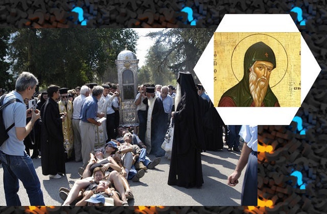 Перед этими праздничными датами стеклянный гроб (раку) с телом святого ставят в вертикальное положение в главной монастырской церкви. Так, на протяжении всей ночи люди идут к раке и целуют стекло в том месте, которое приходится на уровень рук Герасима. На следующий день проходит сама процессия, раку несут перед больными, а то время как они лежат на земле. Если человек ведет себя неадекватно, считается, что так он избавится от бесов. Многие из больных ведут себя неадекватно, они бросаются на священников, кричат и паникуют. Очевидцы говорят, то в тот самый момент, когда рака находится над безумцем, он сразу же успокаивается, умолкает и замирает. Когда тело Герасима снова оказывается на расстоянии от человека, он продолжает буйные протесты. Порой таких гостей острова даже приходится фиксировать веревкой, иначе их не усмирить.