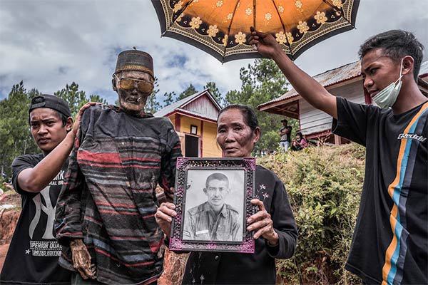 Народ тораджи проживает на индонезийском острове Сулавеси. Раз в три года тораджи отмечают праздник под названием «манене», что означает «Церемония очищения тел умерших». Это своеобразный праздник почитания умерших, чем-то похожий на мексиканский День мёртвых. Только тораджи не просто вспоминают своих мертвецов, а буквально достают их из могил.
