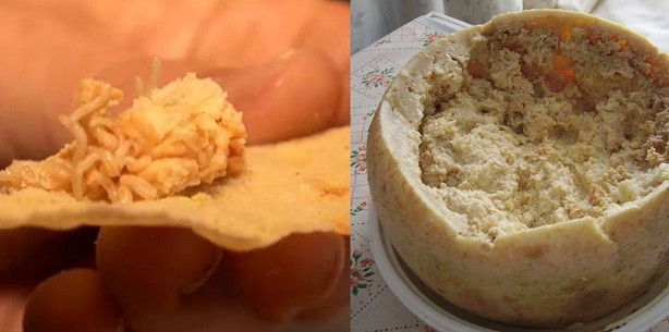 Многие считают, если хочется отведать чего-то уж очень экзотического, то обязательно нужно ехать в Юго-Восточную Азию. Мол только там подают блюда, которые могут вызвать отвращение у обычного европейца. Но это не совсем так. Европа тоже может похвастаться гастрономическими диковинками. И первой предложить такое блюдо, может старушка Италия. В итальянской Сардинии делают уникальный сыр, который обожают матерые гурманы и который свел в могилу, много гастрономических естествоиспытателей. В самой Сардинии-этот сыр называют "гнилым". Готовят его на основе другого сыра - "пекорино". Технология изготовления в корне отличается от процесса сыроварения. Приготовленные головы сыра "пекорино", кладут в солевой раствор, но ненадолго. Нужно держать в соли столько, чтобы он был привлекательным для мух и в тоже время в не испортился. В сырных головах проделывают отверстия, заливаю в них немного масла и оставляют на воздухе. Мухи тут же заселяют сыр своими личинками и начинается процесс ферментации.