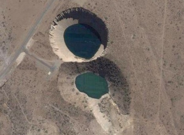 Воронки называют северной и южной. Более внушительной является северная — она обладает очень крутыми склонами, которые рассыпаются и уходят под воду прямо на глазах. Берега у колодца считаются очень опасными, есть вероятность провалиться и утонуть. В длину озеро занимает 300 метров, а в глубину около 100. И только 21 метр занимает водоем, все остальное же — отвесные скалы.