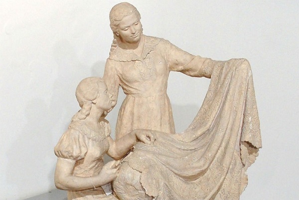 Ее автор, Анастасия Пащенко, представила на конкурс не только описание памятника, но и проект скульптурной группы. Это фигуры двух молодых мастериц, что рассматривают изготовленное ими кружевное полотно.