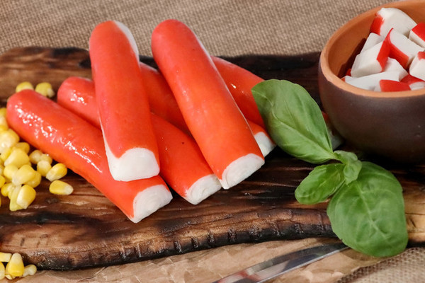 Возможно так было бы и сегодня, но в середине 20 века, японские производители пищевых продуктов нашли интересный способ продвинуть свой национальный продукт на внешний рынок. На традиционный рыбный фарш пропущенный через центрифугу для отжима лишней влаги, японцы нанесли красную полосу пищевым красителем, а в состав пресного фарша добавили сахар, соль, пищевые добавки, усилители вкуса и консерванты. Этот, по сути новый продукт, они назвали имитацией крабового мяса. И действительно, если взглянуть на мясо настоящего краба, то оно очень напоминает новый продукт.