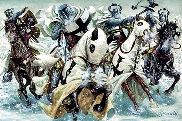 Хотя орден создавался для гуманитарной цели, тевтонские рыцари были главным образом военным орденом и участвовали в 3- м крестовом походе (1187-1192 гг.), чтобы отвоевать Иерусалим у арабов. Рыцари носили белые сюртуки с черным крестом.