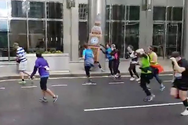 Так произошло с мужчиной, который бежал марафон The Vitality Big Half в костюме Биг Бена. На половине дистанции он должен был пробежать через бизнес-центр Canary Wharf, в котором дул сильный ветер. Естественно, бедолагу просто сдуло, впечатав его в ближайшее здание.
