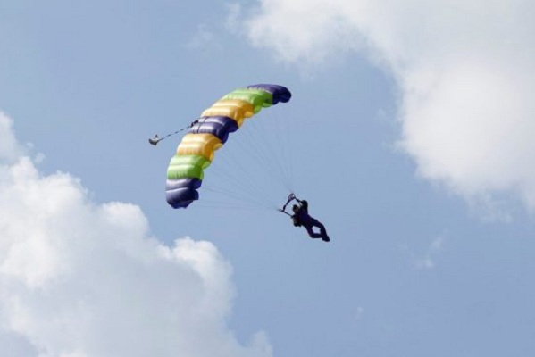 Смельчак, которого в сети зовут Энди, регулярно находится в воздухе, делая панорамные фотографии заката столицы. Для этого он прыгал из самолета с парашютом. Однако в этом случае обеспокоенный житель одного из районов увидел, как парашютист падает на землю. Он приземлился в пруду, и тем самым уничтожил свою любимую камеру.