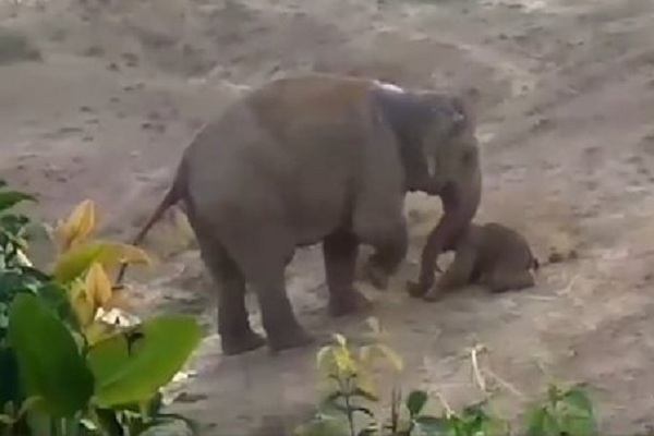 Слониха пыталась тащить своего новорожденного в деревне Западной Бенгалии, Индия, когда слоненок заболел и не мог встать. По имеющимся данным, местные жители пришли на место происшествия и начали бросать камни в мать и ребенка. Мать пыталась перенести свое дитя в соседний лес после того, как родила его около сухого озера, однако местным не понравилось, что слон оказался "не на своей территории". Она топала ногами, предупреждая людей о своей злости.