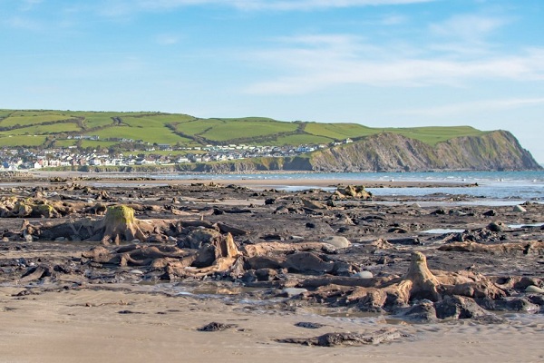 Археологи предполагали, что лес бронзового века существовал на валлийском пляже, потому что небольшие пни иногда были видны вдоль его частей во время отлива. В 2014 году пни высотой с голень были видны впервые, но местные жители сказали, что вскоре они были в основном засыпаны песком. Недавно был шторм, и впервые за тысячи лет стало видно массивные толстые стволы, раскидистые корни и многое другое от деревьев.